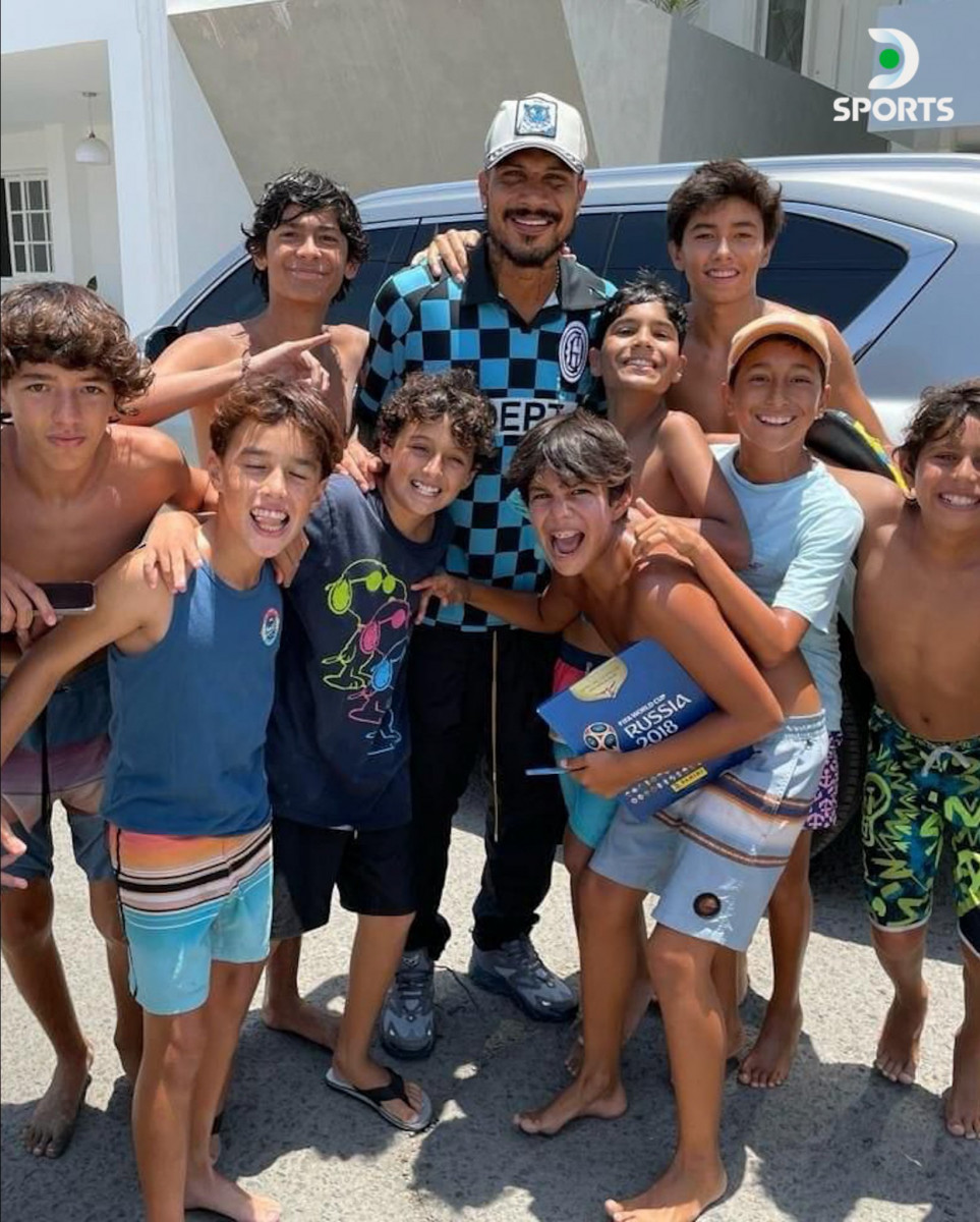 Luego de su arribo a Trujillo, el goleador decidió tomarse una foto con un especie de niños. Foto: DSports.