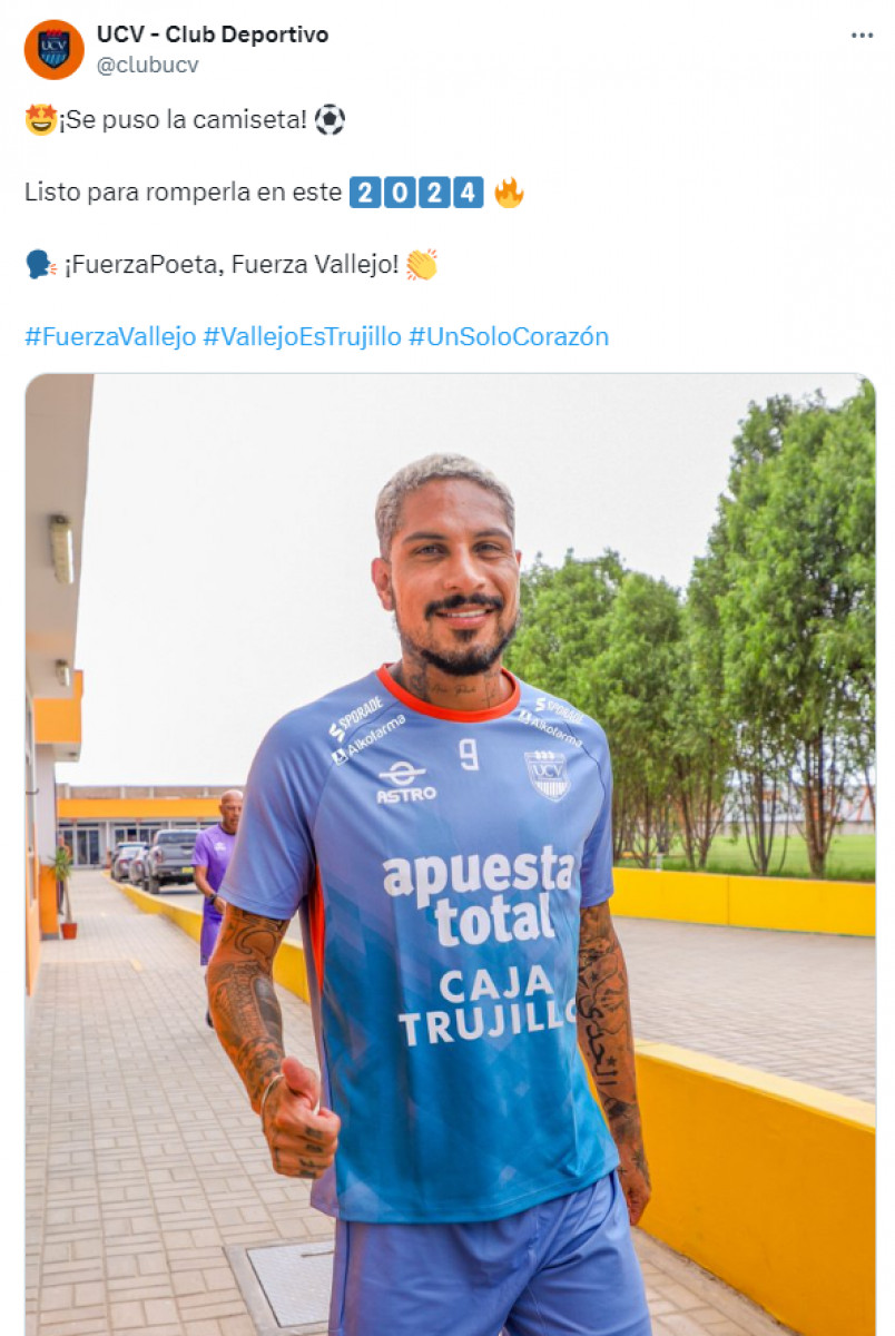 La César Vallejo subió una foto del punta de 40 primaveras con la indumentaria de entrenamiento. Foto: Twitter/UCV
